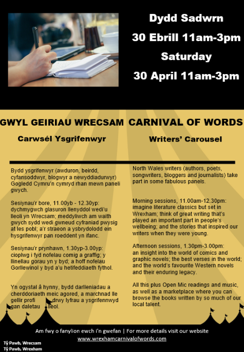 Wrexham is a fantastic, creative city and it’s a hub for a diverse range of Welsh voices that deserve to be heard. The Carnival is an amazing event that brings writers together, both from Wrexham and beyond.
